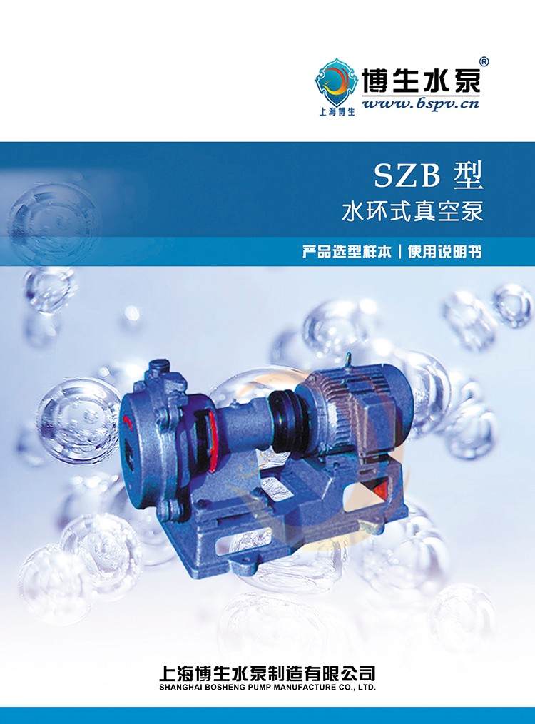 SZB懸臂式水環真空泵為單級單吸懸臂式水環真空泵,泵的出、入口對稱偏心向上。可供抽吸空氣或其它無腐蝕性、不溶于水、不含固體顆粒的氣體。吸入壓力為-0.086Mpa。目前制造的SZB型水環式真空泵型號有:SZB-4、 SZB-8。其中4(8)表示當柱高為520毫米時的氣量(升/秒)。
